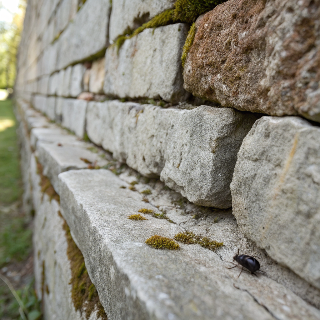 Détail macro des pierres ancestrales de la chapelle